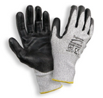 Grey liner safety gloves are made with cut-resistant fibre, nylon and spandex with black polyurethane coating on the palm and fingertips. These sheet metal handling gloves have a Blade Cut Resistance Rating of 5/5 in accordance with European Standards EN 388 Cat II (Mechanical Hazards)