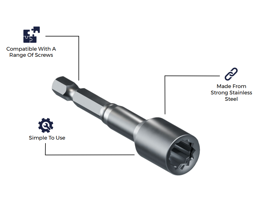 Ensuring that your moulded head screws are fitted properly is vital to the structure and longevity of your roofing system. The Bi-Hex Socket Driver is made from high-quality steel and built to withstand a high torque.