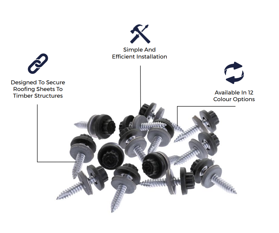 These Screws have a coloured moulded head in order to improve the aesthetic of the fixing. With twelve colour options to choose from, the Screws can be matched to your Roofing Sheets in order to create a smooth colour finish. It also reduces the added cost and effort of having to buy separate caps to be fitted onto the top of the Screws.