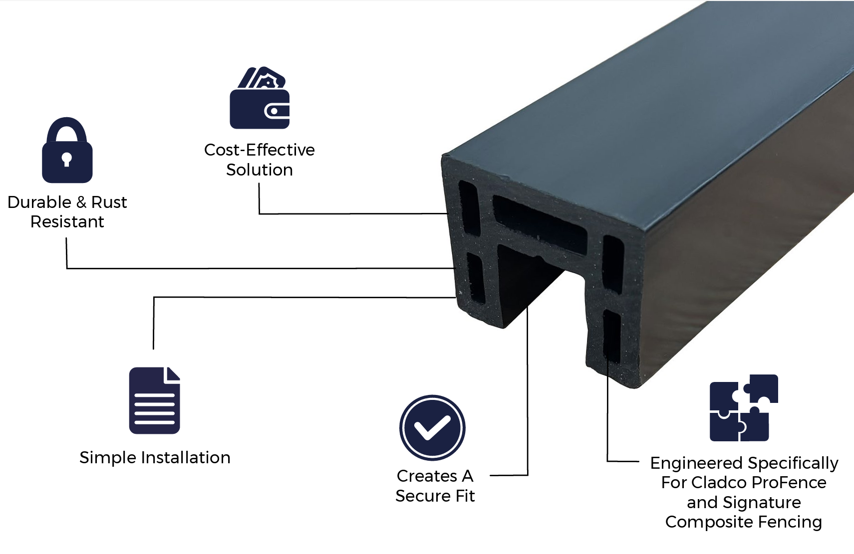This 2m long composite fence post spacer measures 45mm x 34mm and is designed for use with both Cladco Signature and Cladco ProFence fencing panels and pre-existing concrete posts. Durable and weather-resistant, this lightweight spacer ensures a secure, professional installation.