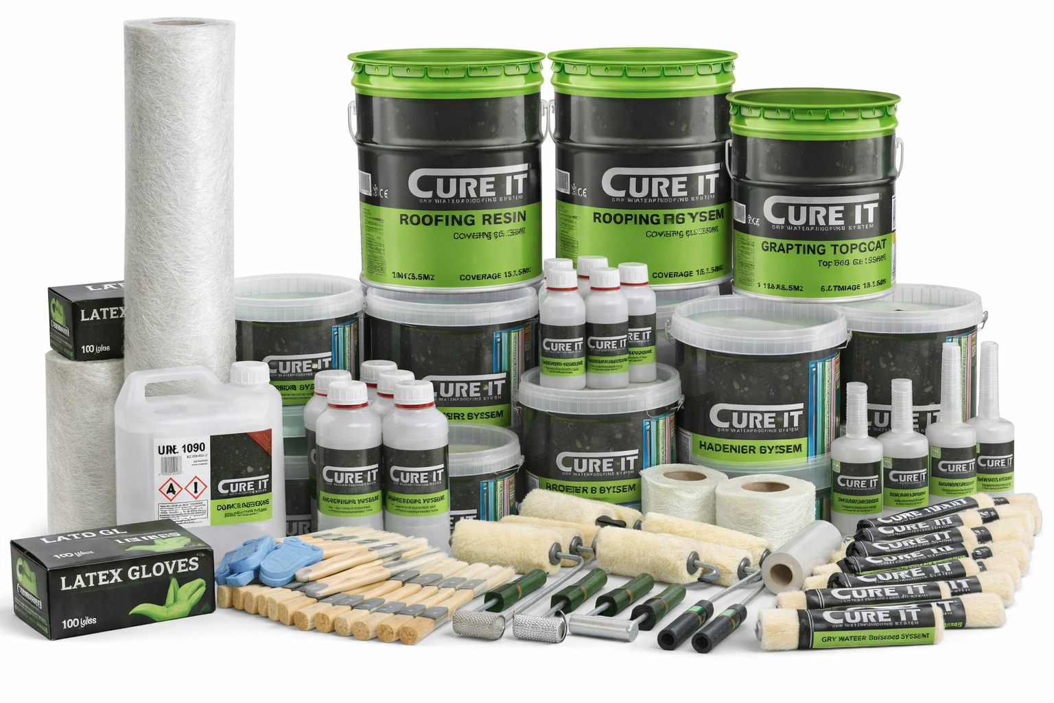 The Cure It 100m² GRP Roofing Kit provides everything required to install a high-quality fibreglass flat roof system. Designed for ease of application and long-term durability, this complete kit includes Cure It’s industry-leading resin and topcoat, along with all the necessary tools and materials for a seamless, fully waterproof finish.