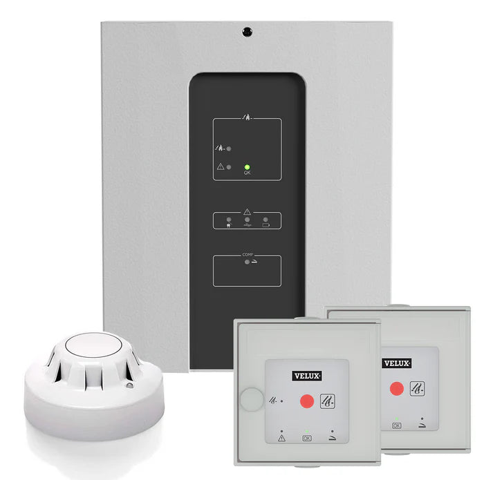 Additional smoke sensor and break glass units can be purchased separately. Electrical control system and wind deflector requires installation on site. Single SK06 roof windows provides 1m2 of smoke ventilation.
