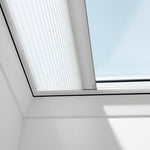 With the innovative VELUX FMK, you can choose a white or black stylish and practical Double Pleated Blind, which offers basic privacy and greater control of sunlight at the touch of a button.