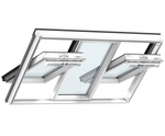 VELUX white-painted 3-in-1 STUDIO roof windows are ideal for Velux extensions, Velux loft conversions & home renovations. Featuring a single frame, the New VELUX STUDIO 3-in-1 roof window will become the focus point in your home, providing you with a bright and light filled space with a real wow factor.