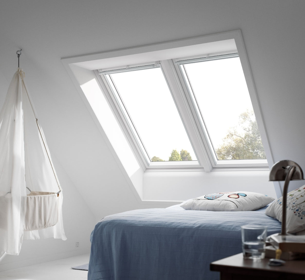 The innovative VELUX twin combination flashings allow for two VELUX windows to be installed side by side with an 18mm gap between the windows, bringing in a larger area of natural light to brighten up a room. This VELUX twin combination flashing is for slate up to 8mm thick and suitable for pitches of 15° - 90°.