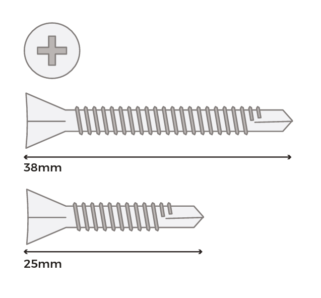 - Screw length: 25mm or 38mm