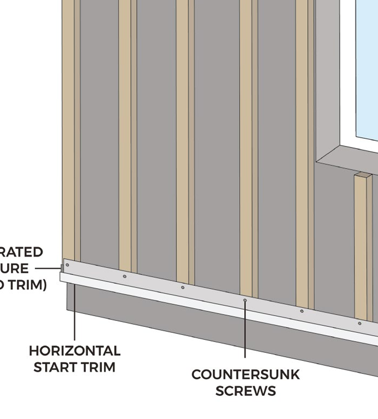 Implementing this horizontal start trim in the fitting process will ensure that the cladding boards are positioned level and evenly on the first row, allowing for future rows to keep the same professional line.