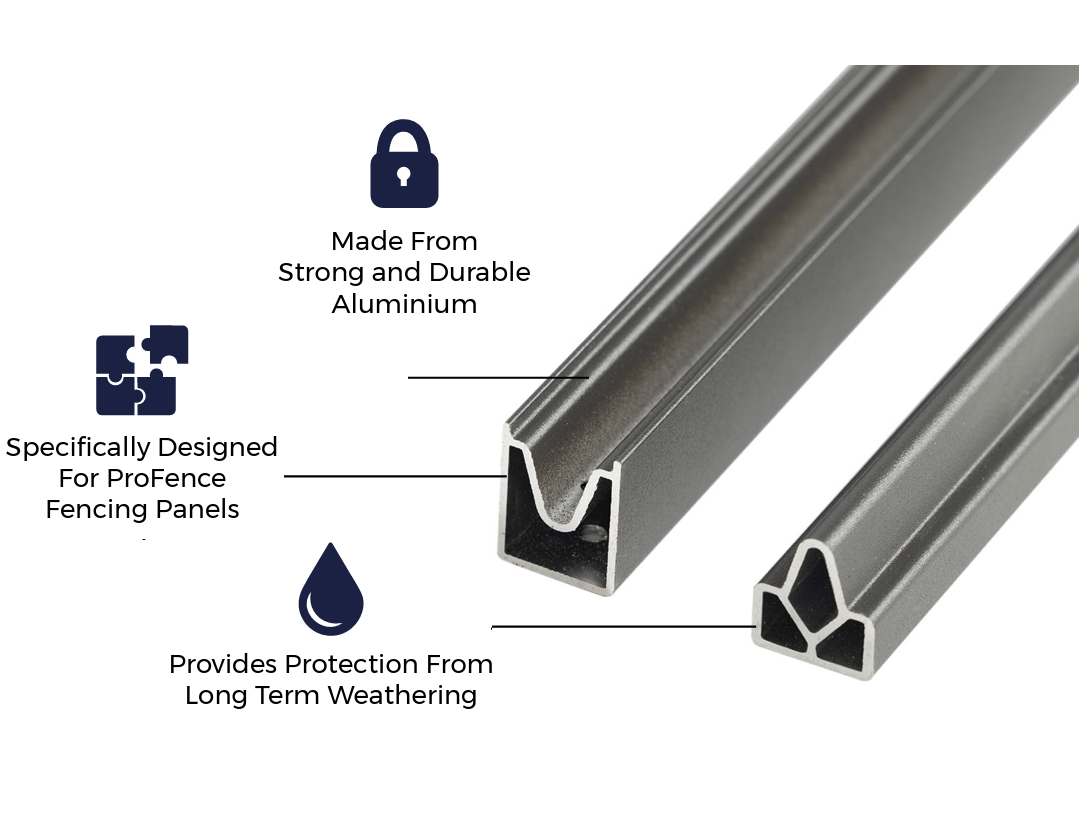 These 1.84m top and bottom rails secure ProFence panels to the posts for a complete fencing system. Each rail is supplied with a ProFence stainless steel L corner for aluminium rail to ensure correct installation.