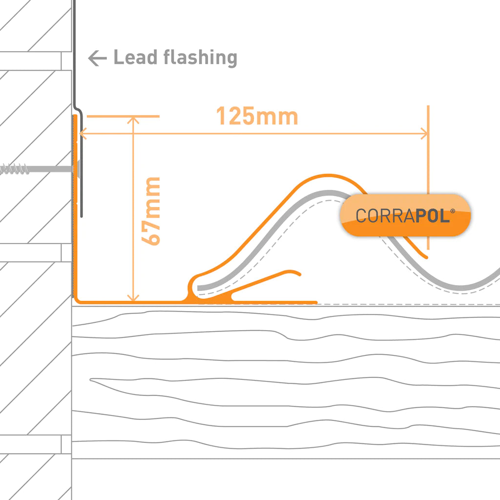 Corrapol Rock N Lock Wall Flashing is the best way to flash to a wall upstand for a number reasons: