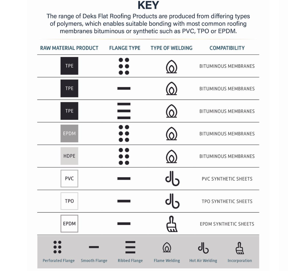 - DEKS EPDM Horizontal Parapet Drain Outlet - Round (50mm - 125mm)