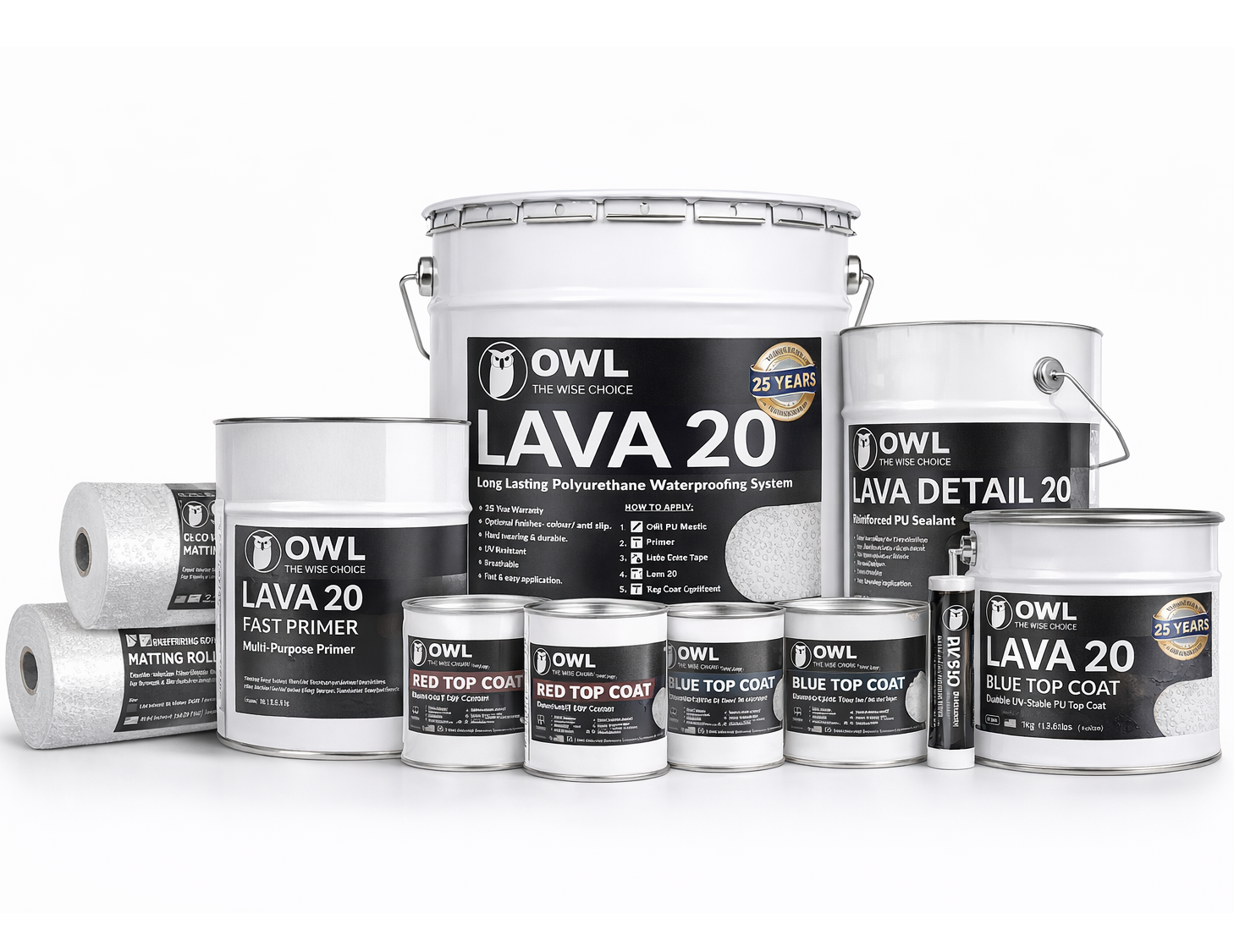 OWL Waterproofing’s Lava 20 is a high-performance, liquid polyurethane waterproofing membrane system that offers a flexible, seamless waterproofing solution with good temperature resilience, broad substrate compatibility and fewer layers, Lava 20 offers many advantages over standard polyurethane products. It is especially appealing for refurbishment or complex detail work where conventional multi-layer membrane systems might struggle. The fast curing, single-coat possibility and strong mechanical/thermal properties make it a strong option in many scenarios