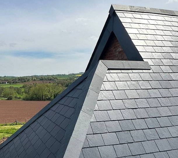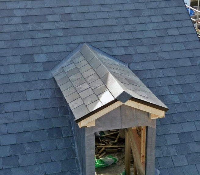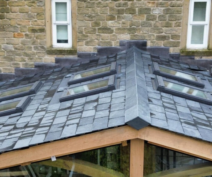 The ArmouredSlate has a traditional appearance, indistinguishable from traditional slate. Because the system is cross laminated and bonded with our unqiue and bespoke fibreglass preformed plate, the slates can withstand extreme force or weight, they are extremely strong. This means walking on the roof is no problem, and the slates have extreme durability added, but still with all of the natural propertes and appearance.