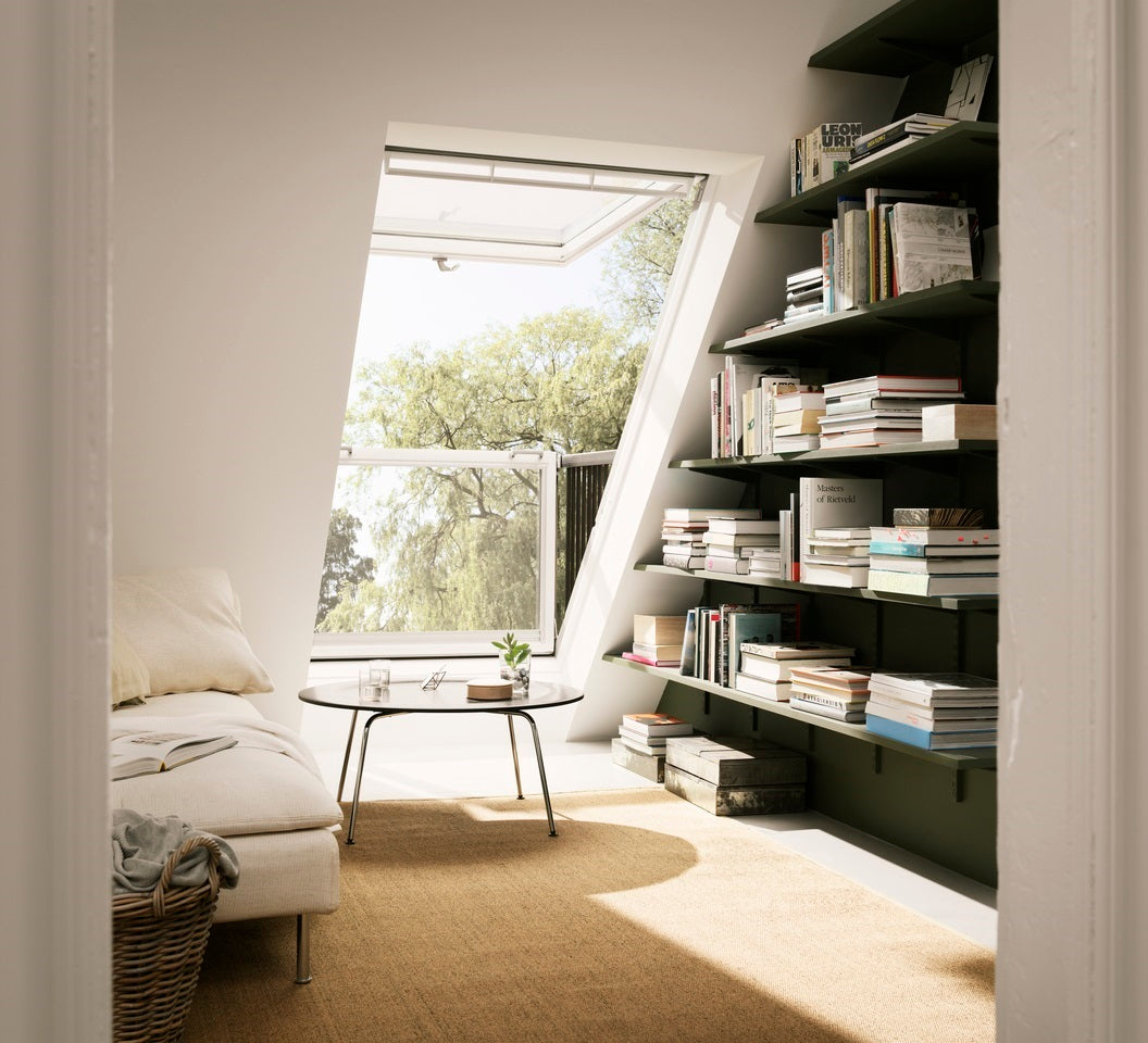 The VELUX Cabrio® Roof Balcony is easy to use. The upper section is top hung and opens outwards to 45 degrees, whilst the bottom section unfolds into a glazed balcony with side railings for safety. The Cabrio® roof balcony systems adds air, light and a great view to your living space and the Top-Hung sections also rotate to 180º for easy cleaning.