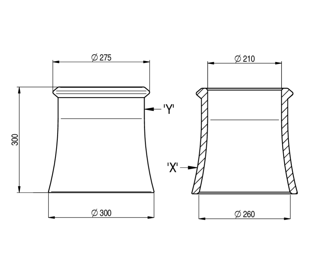 - Base Diameter (internal): 260mm