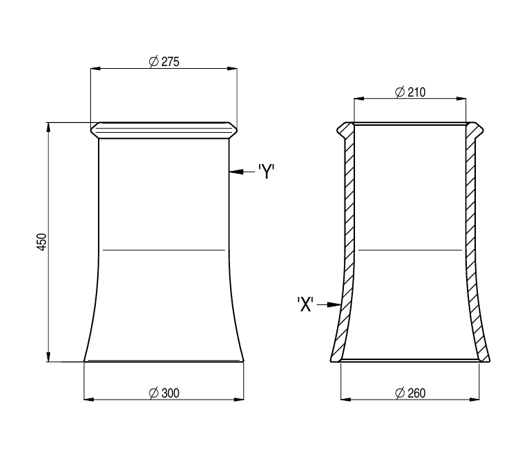 - Base Diameter (internal): 210mm